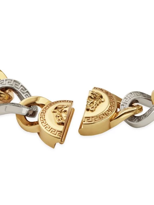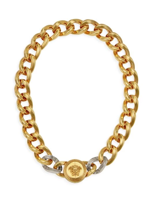 This chain-link necklace is highlighted with Versace’s iconic Medusa head medallion.