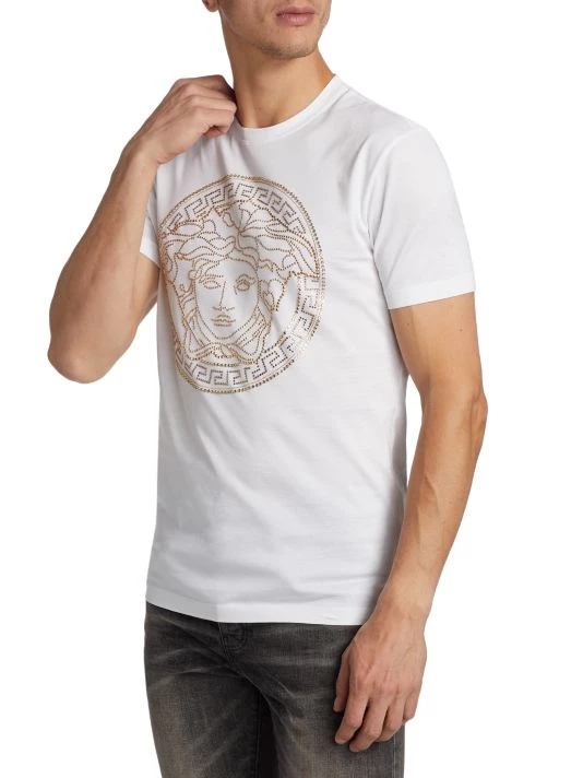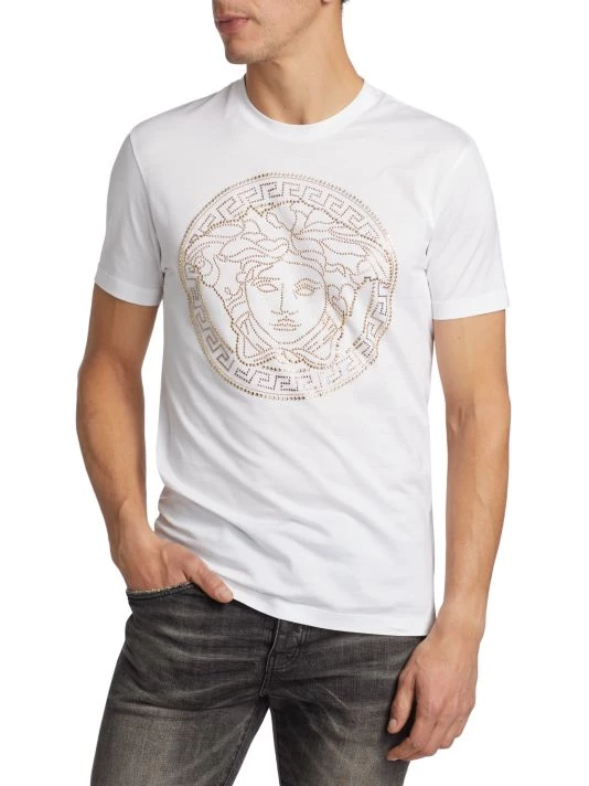 A crystal-embellished Medusa head dresses up this classic crewneck t-shirt.