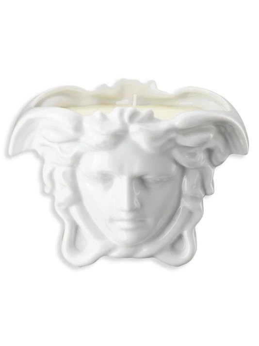 Crafted from the finest porcelain molded into polished Medusa head, this candle is filled with high-quality natural soy wax with a fresh and flowery scent.