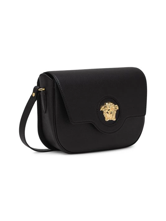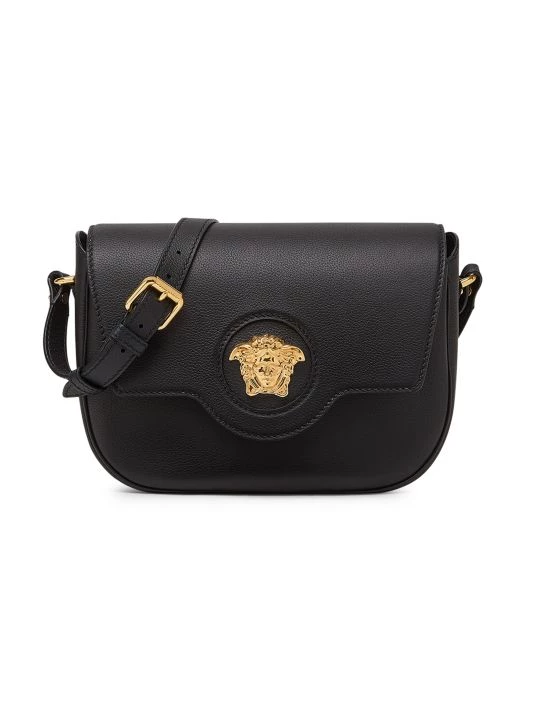 Baroque-style Medusa insignia lends opulence to this sleek leather crossbody bag.