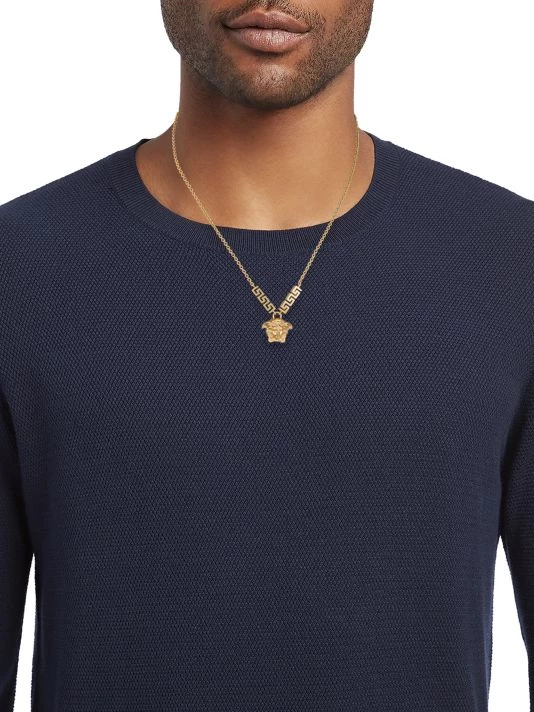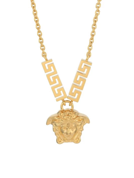 Crafted of brass, this chain necklace by Versace is adorned with the label’s signature Medusa head pendant with Baroque-inspired accents.