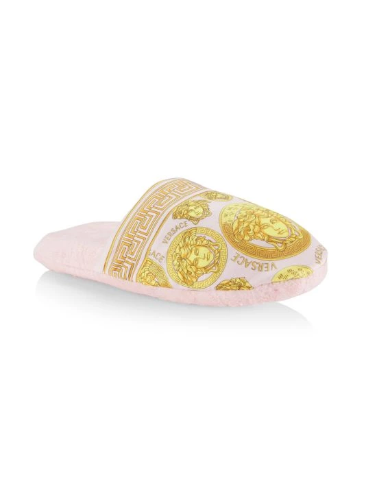 Soft slippers adorned with signature medusa print finished with a Greek key trim.