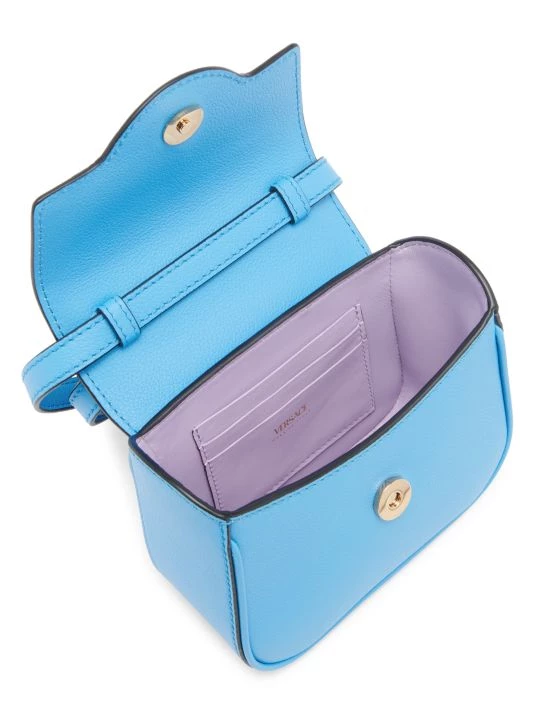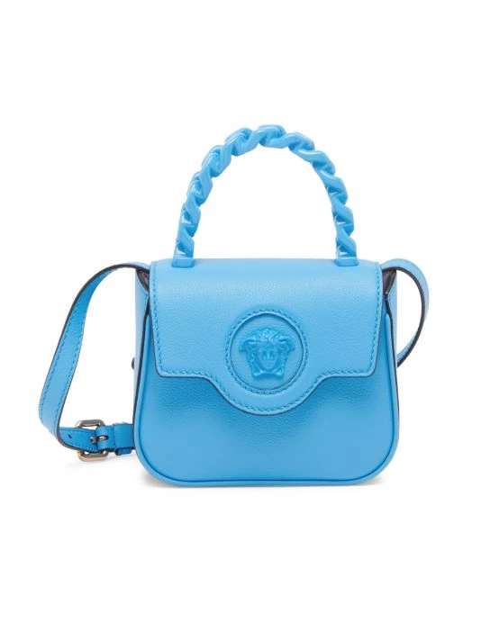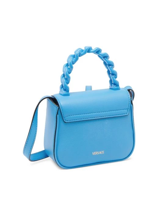Finely grained leather constructs this Italian made bag, decorated with Versace’s signature Medusa emblem and a structured chain handle.