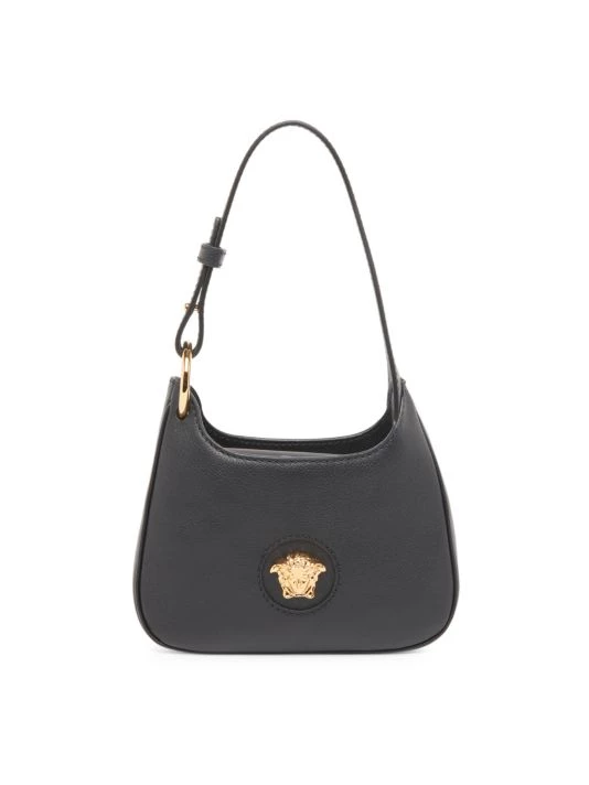 Grained leather baguette highlighted with signature Medusa head hardware.