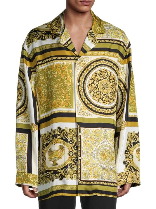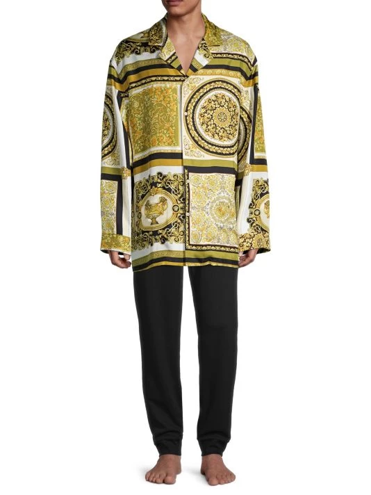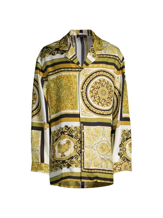 Quintessential Versace, this classic button-front sleep shirt is crafted in premium cotton stretch and boasts the Barocco Mosaic print.