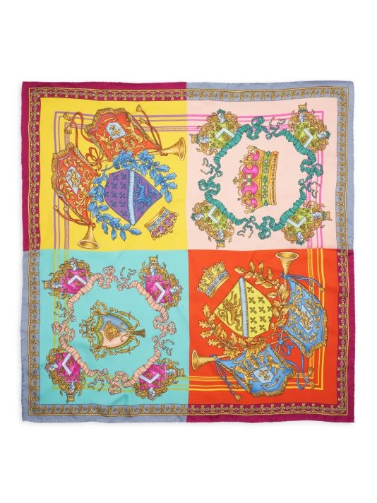 Four prints in one, Versace’s foulard is decorated with a variety of graphics including the staple Medusa head. This Italian-made piece is crafted of luxurious silk.