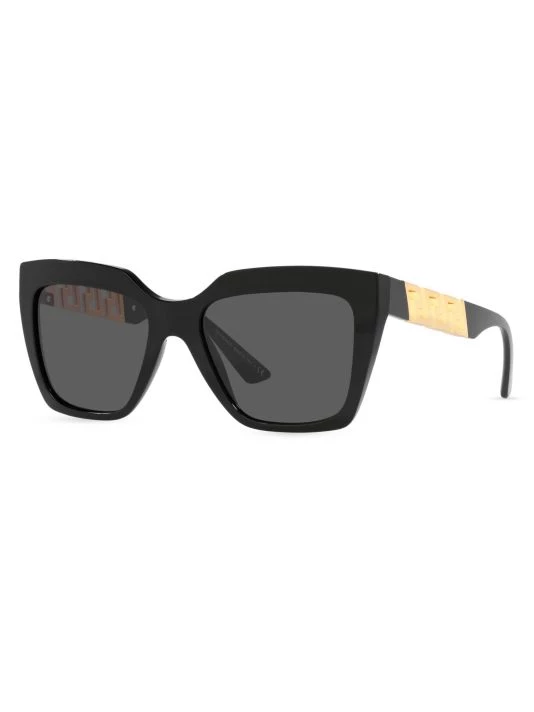 These stunning Versace sunglasses feature oversized square frames with solid lenses and the label’s signature Greca motif at the temples.