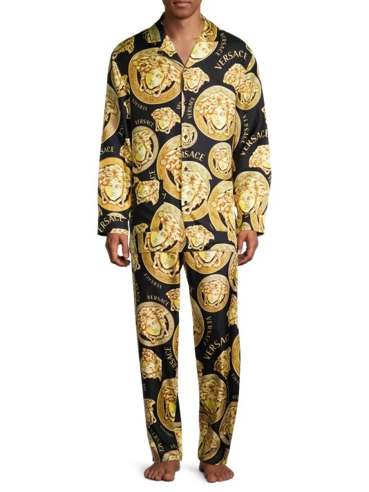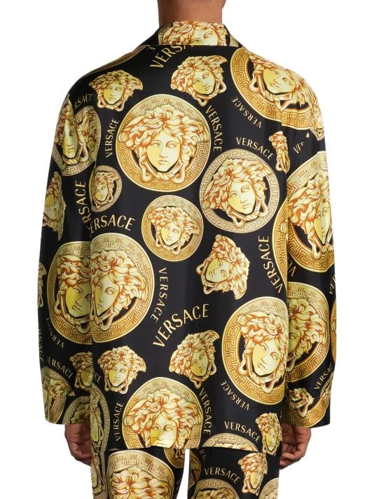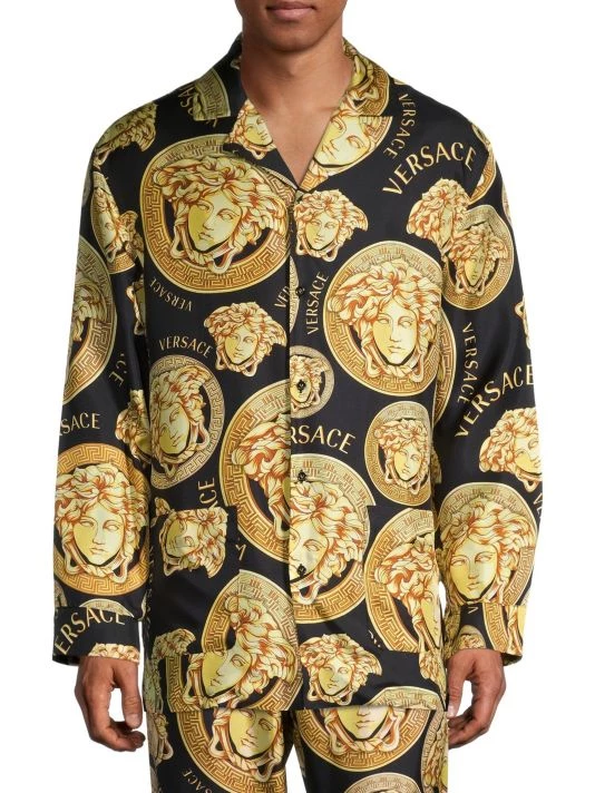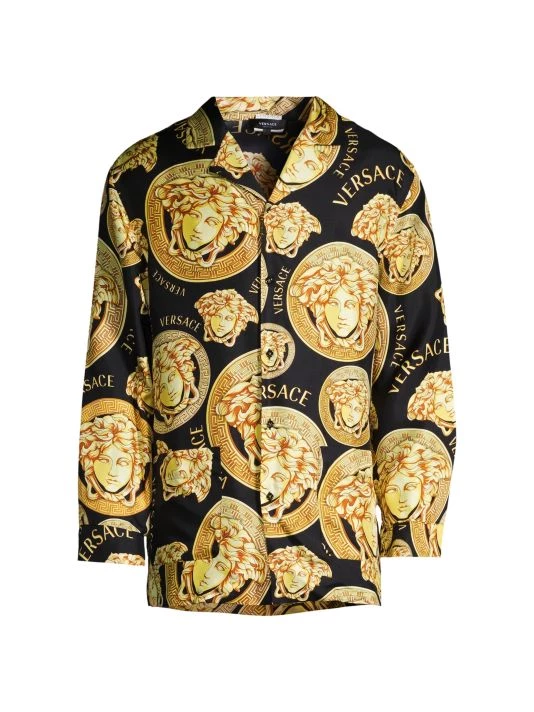 A luxurious pajama shirt crafted from exceptional quality silk twill. The classic style features the golden Medusa Amplified print.