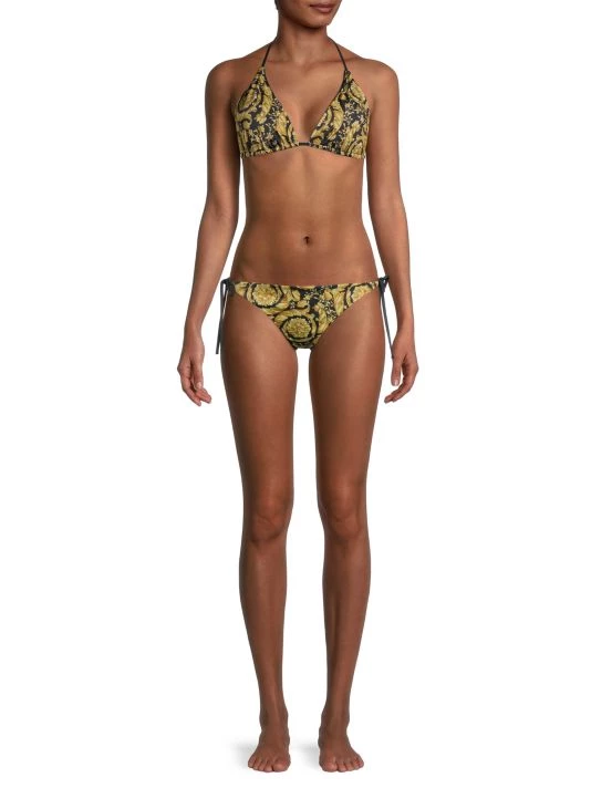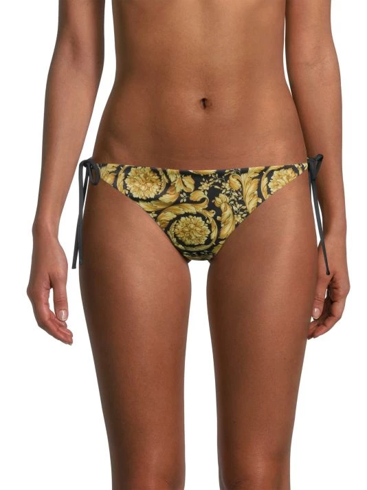 Classic tie bikini bottom with a signature branded print design and adjustable fit.