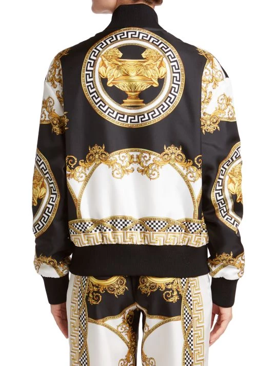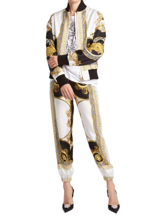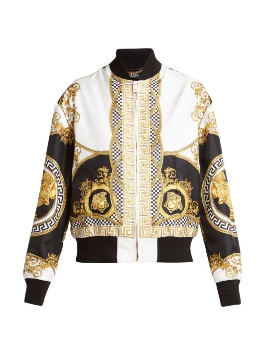 Traditional bomber jacket updated with Italian craftmanship, crafted of soft silk and finished with vibrant heritage print.