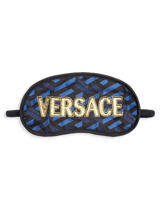 A golden embroidered logo fronts this luxurious silk sleep mask.