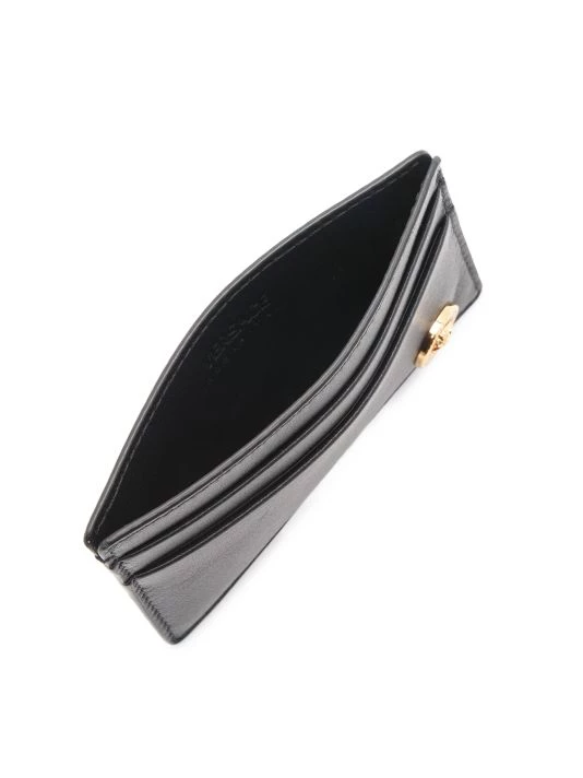 A circular, goldtone metal appliqué boasting the brand’s iconic Medusa head logo adds flair to this minimalist leather cardholder.