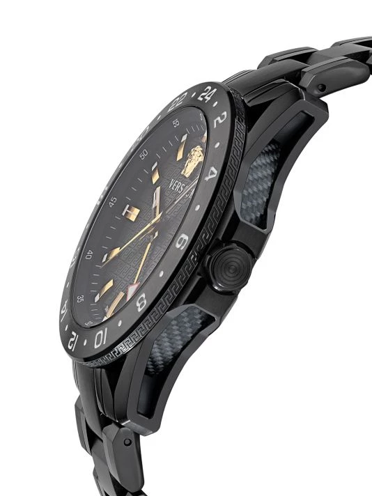 The sport tech timepiece becomes GMT with a new movement that restyles the watch design. The 45mm case body features a 3D medusa at 12h, bold indexes, and a unique Greca pattern all over the dial.