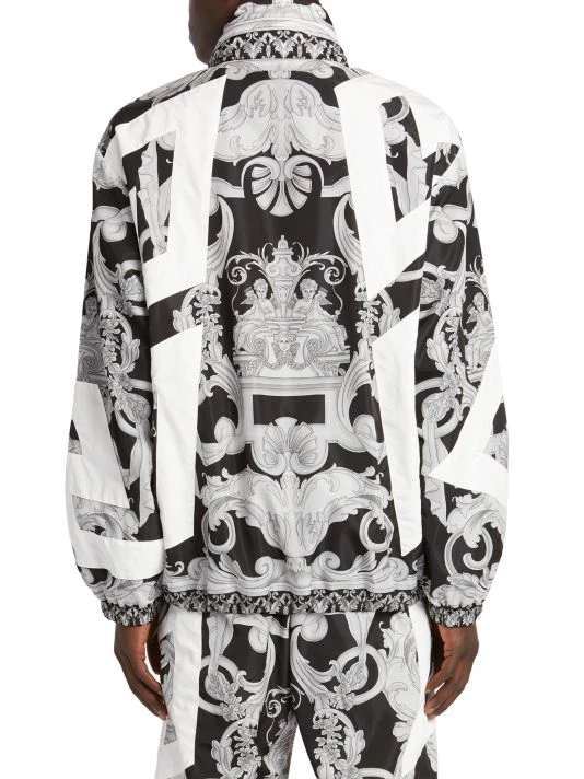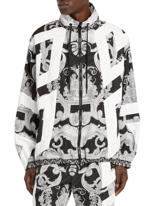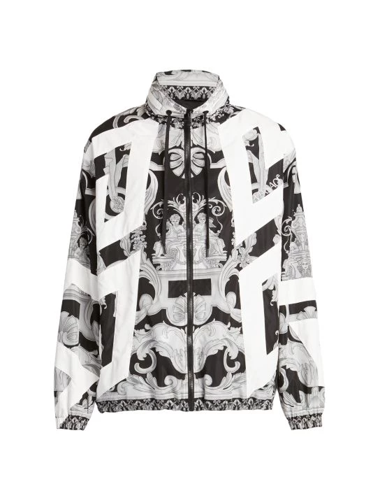 From The Silver Baroque and Black Collection.Versace’s nylon jacket sports a classic Barocco print.