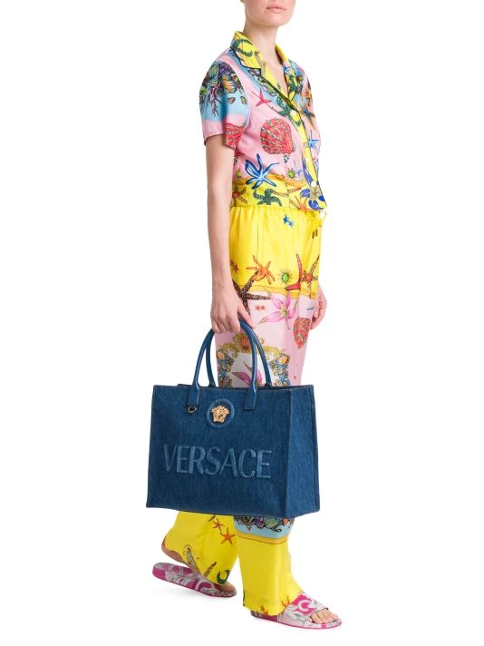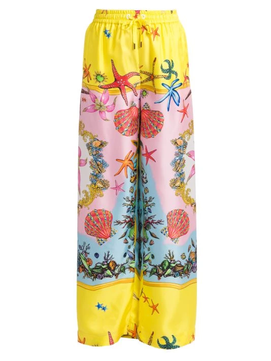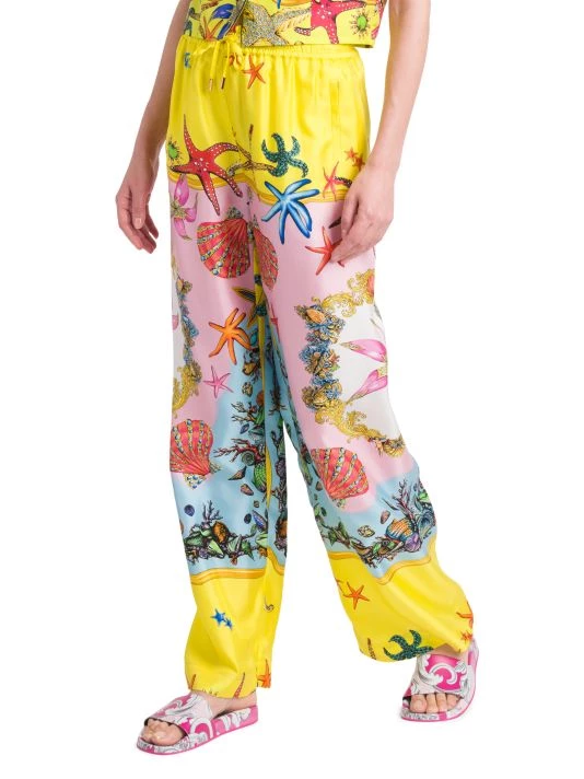 These sleek Italian-made pajama pants are crafted of luxurious silk, showcasing Versace’s iconic Tresor De La Mer print.