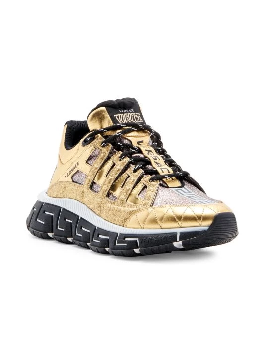 These playful sneakers have metallic overlays adorned with a Greek Key motif at the midsole.