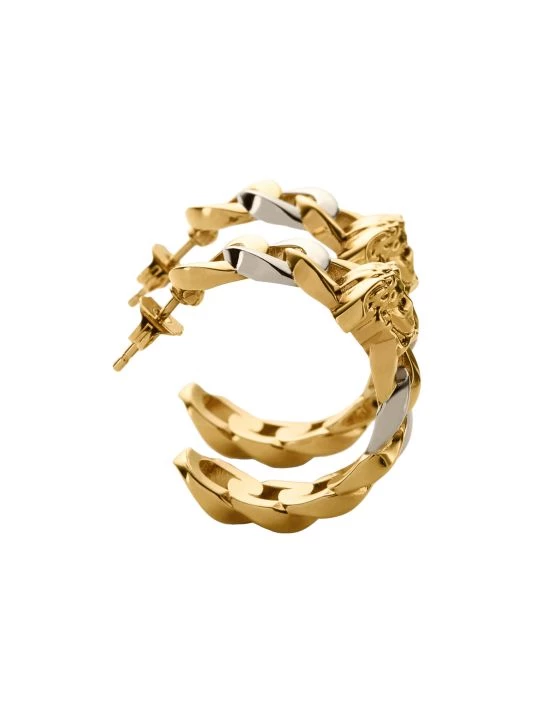 From the Chunky Chain Collection. Gleaming two-tone hoops in a bold chain-link design accented with signature Medusa.