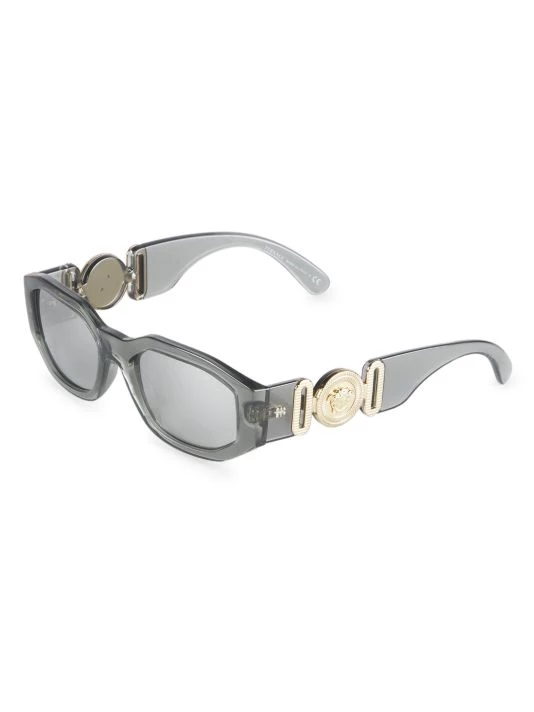 These nylon Versace sunglasses feature solid lenses and branded details at the temples.