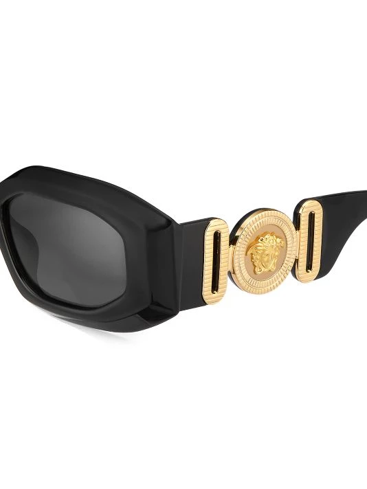 Crafted of acetate, the VE4425U sunglasses by Versace feature intricate brass Medusa head motifs on the arms, lending the piece an opulent feel.