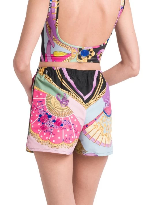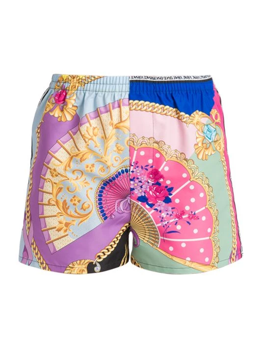Made in Italy, Versace’s swim shorts are decorated in an eye-catching Ventagli print. This statement piece is crafted of lightweight fabric with an elasticized waistband.