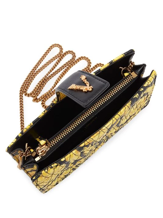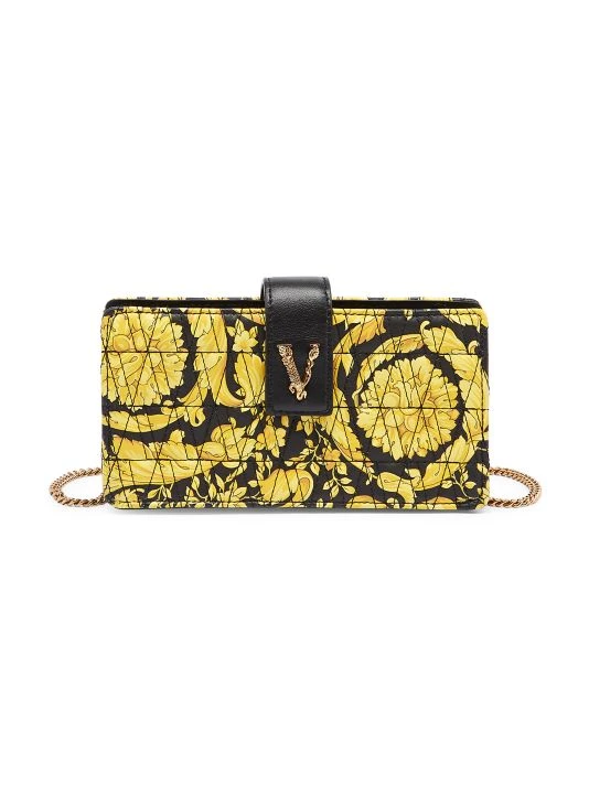 From the Virtus Collection. Decorated in the instantly recognizable Barocco print, Versace’s wallet is crafted of rich leather quilted in a V pattern. This Italian-made piece is punctuated with the signature V logo hardware.