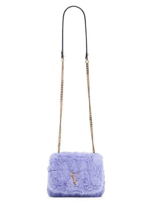 From the Virtus Collection. Made in Italy, Versace’s bag is rendered in luscious faux fur. This statement piece is highlighted with the signature Barocco letter V.