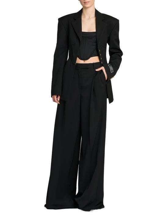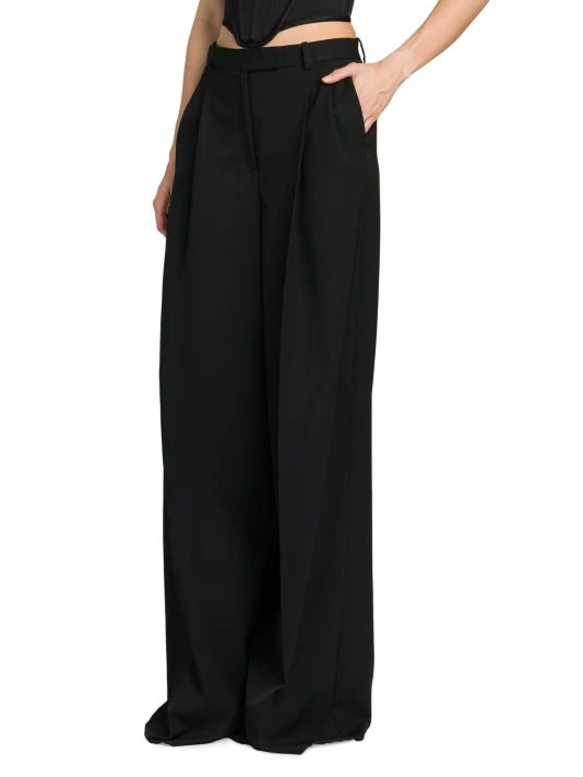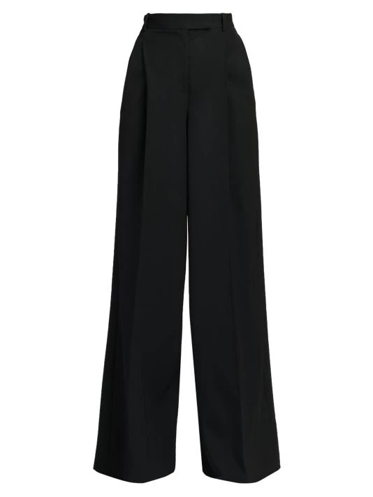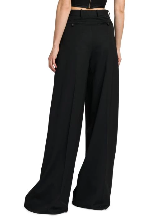 Crafted of wool, these Versace pants are designed in a high-waisted, wide leg silhouette.